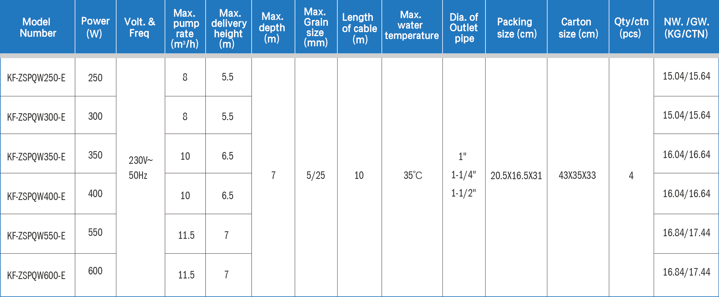 Model NO. KF-ZSPQWXXX-E