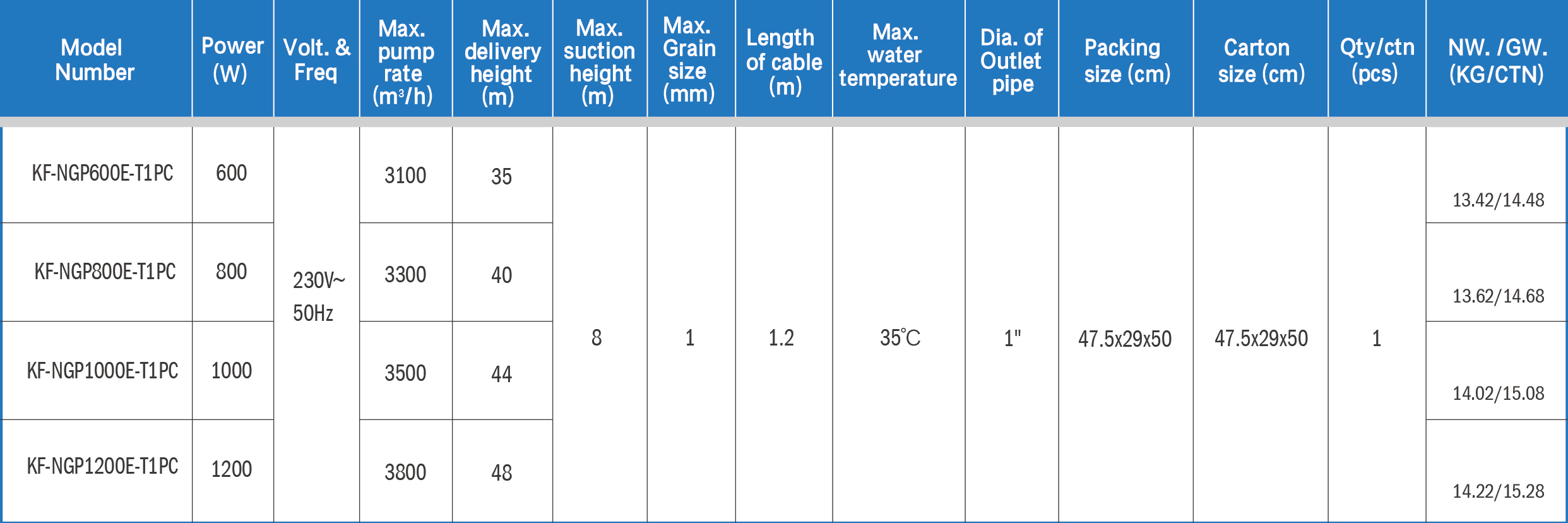 Model NO. KF-NGPXXXE-T1PC