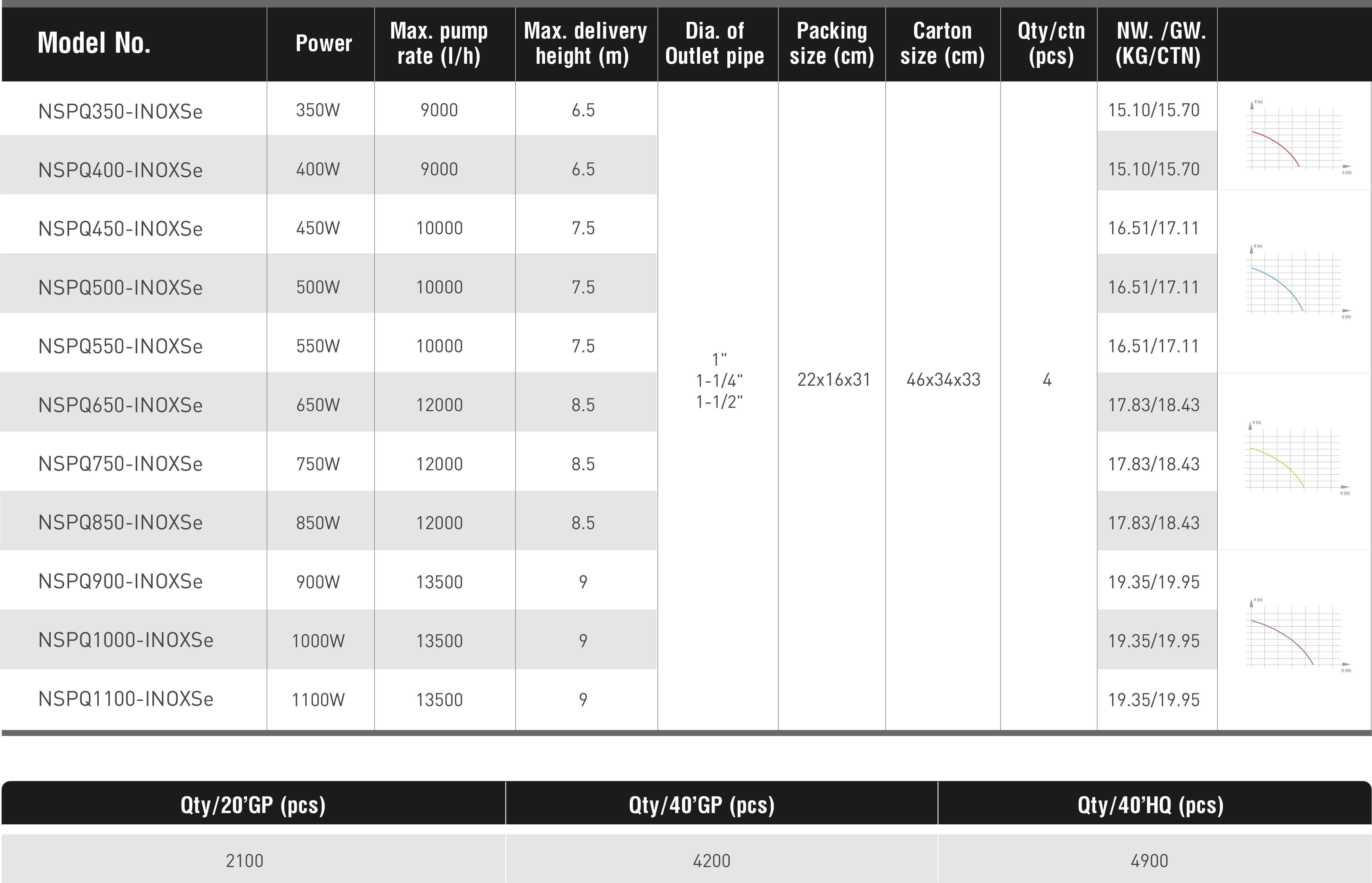 Model NO. NSPQXXX-INOX3Pe/INOX4Pe